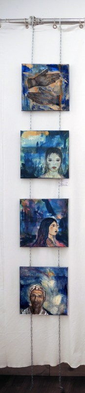 Acrylmalerei, Bleistift und Farbstiftzeichnung, farbige Tuschen.