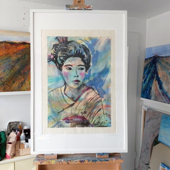 Im Atelier mit meinem Bild „in Seelenruhe“ September 2020 Copyright jutta-jung-ARTWORK