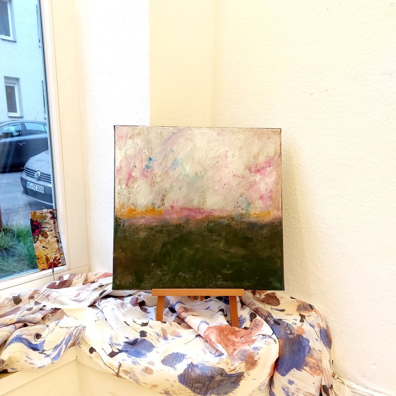 Farbwelten, abstrahierte Landschaften, Symbole und Zeichen aufgreifende Kompositionen, figurative Elemente oder Darstellungen von Menschen: Jutta Jung verbindet in ihren Bildern eine Vielfalt von Materialien und künstlerischen Techniken, um ihre Perspektiven und Sehweisen darzustellen.