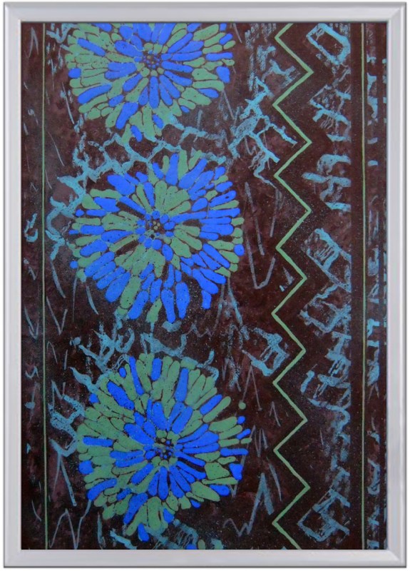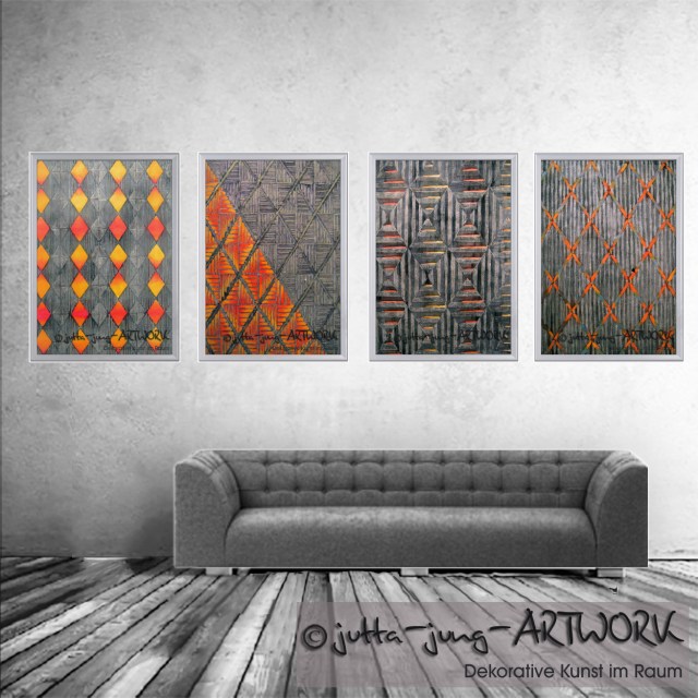 Darstellung der von mir entworfenen Textildesigns mit Farbkonzeption, Design für handgetuftete Teppiche, Möbelstoffe, Bettwäsche, Dekostoffe und Porzellandekore.