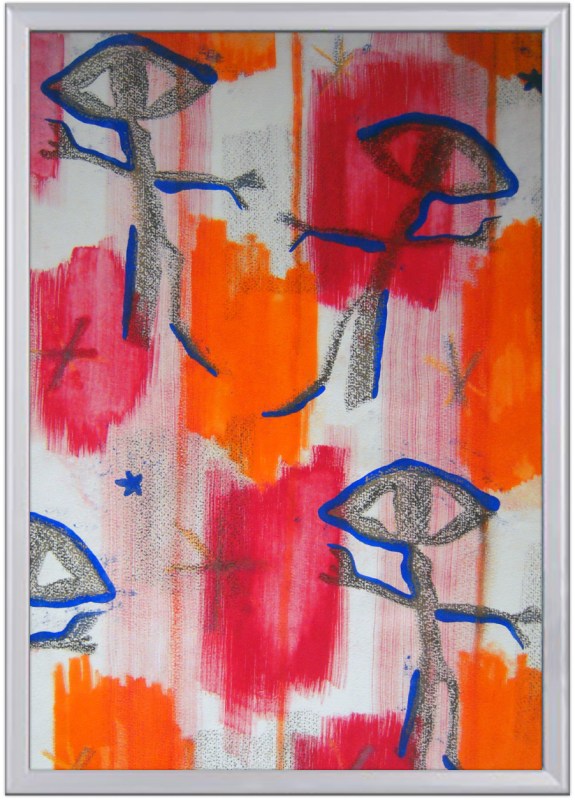 Zeichnungen in Gouache, kombiniert mit Pastellkreiden und Farbtuschen.