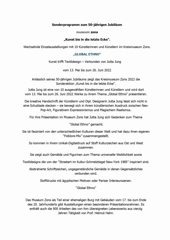 Die Copyrights auf alle künstlerischen Beiträge liegen bei Jutta Jung ARTWORK