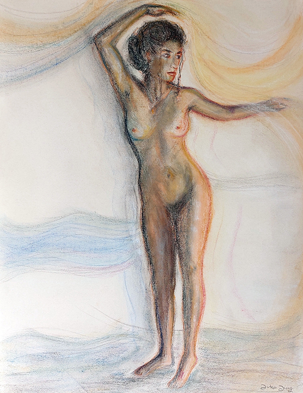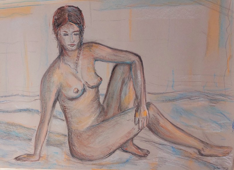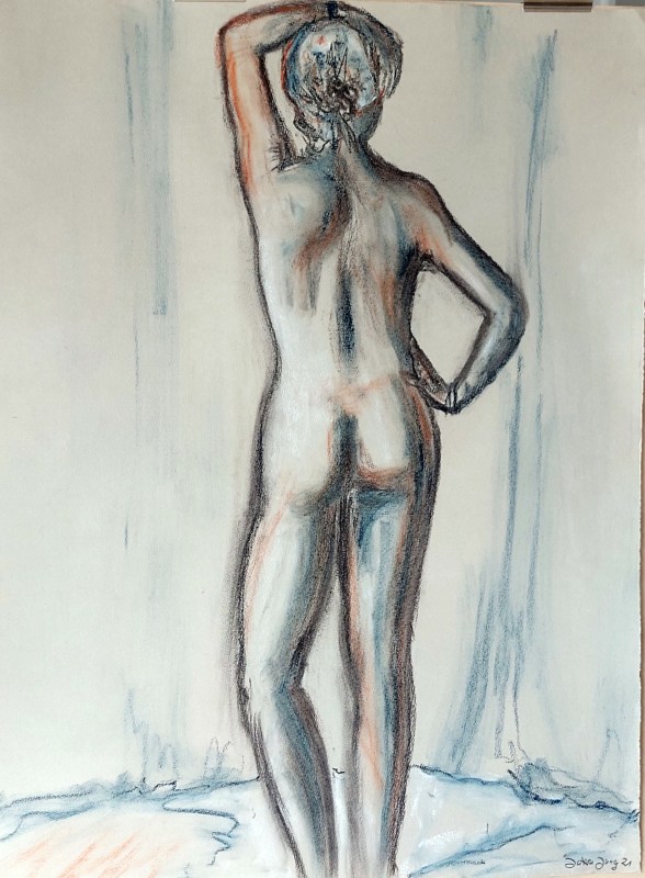 Gezeichnet habe ich Sara auf Ingres-Papieren im Format 65 x 50 cm mit Kohle, Rötel und Pastellkreiden.