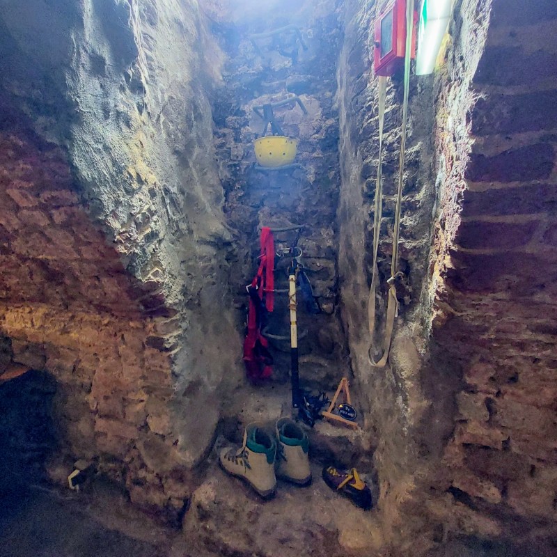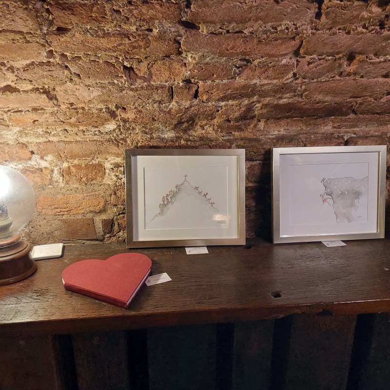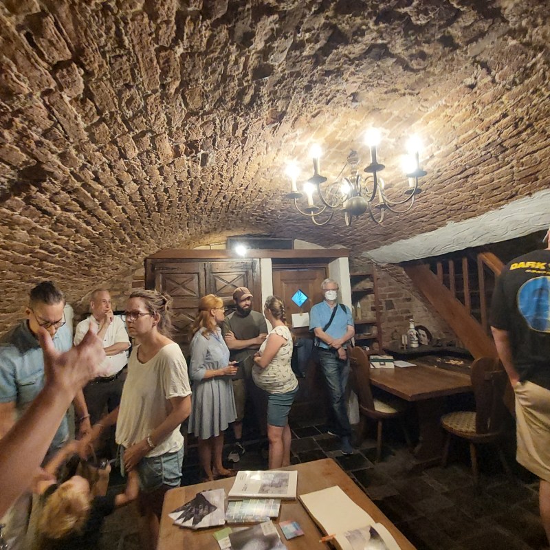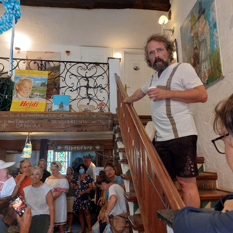 Wein und Wasser werden wieder den Abstieg in den Ausstellungsraum im AlpiNEum erleichtern.