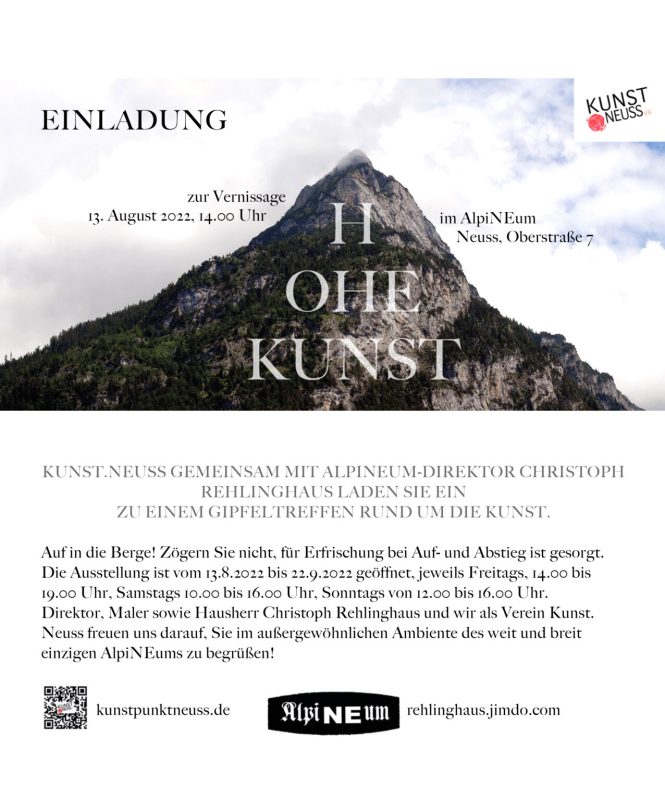 Am 13.08.2022 war die Ausstellungseröffnung im „Alpineum Neuss“. „Hohe Kunst „.