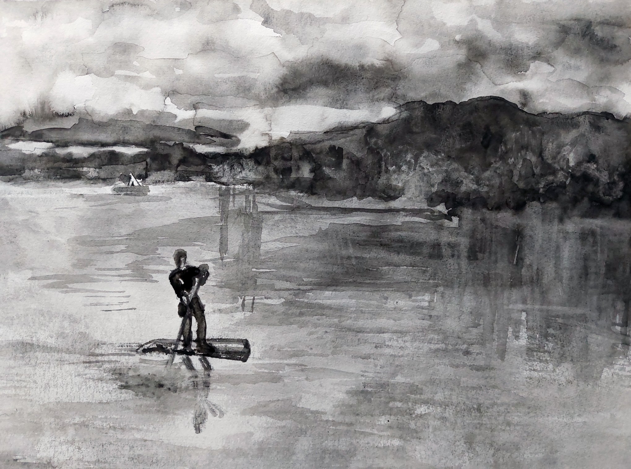Unterbacher See Grisaille – Malerei – Aquarell – 40 x 50 cm, Ton in Ton