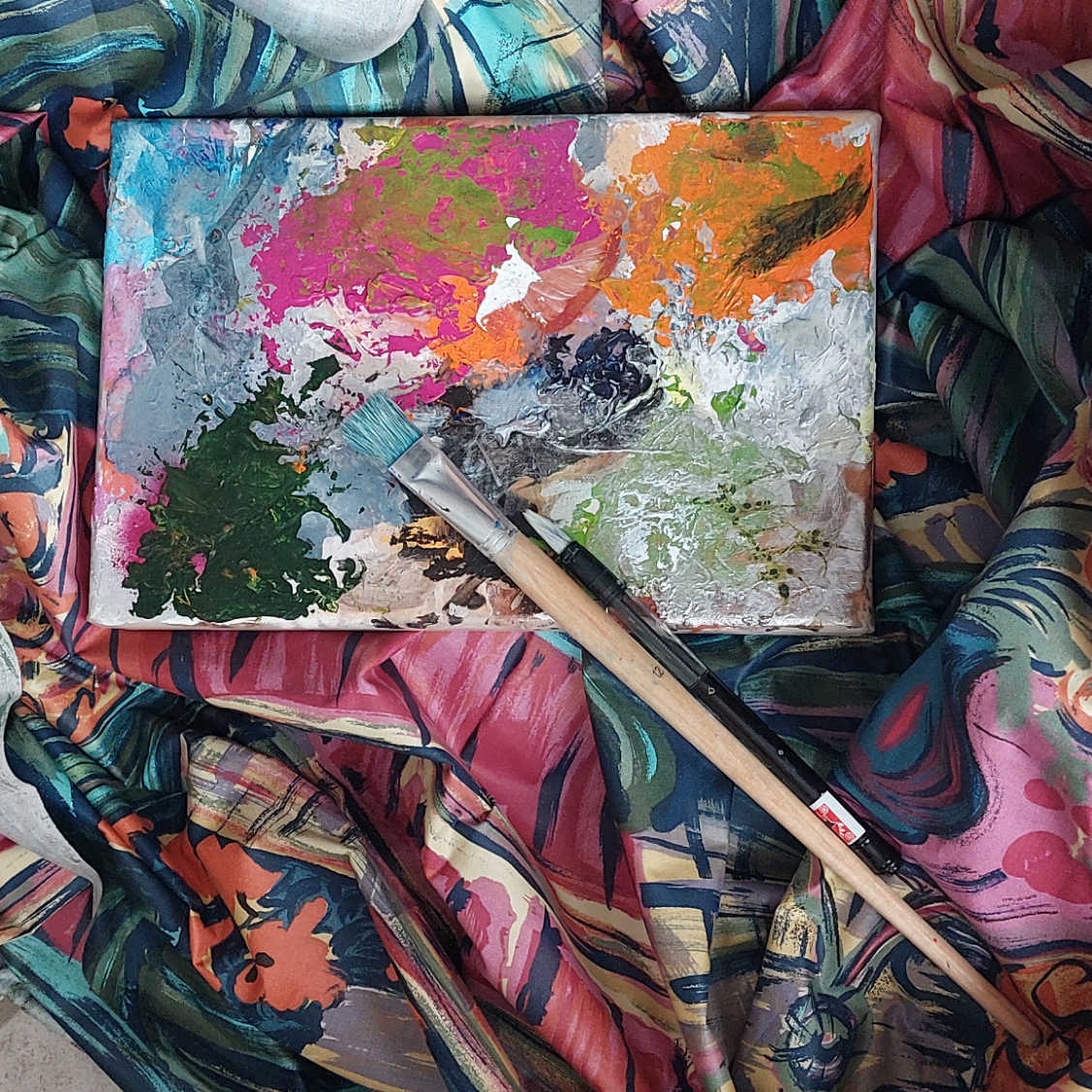 Die Wirkung von Farbe beflügelt mich. Oft arbeite ich spontan und fließend Texturen und Farbigkeiten aus und setze dann bedacht lineare Kontrapunkte und Flächen zu schwebenden Lasuren. So entstehen meine abstrahierten Welten, florale und figurative Szenerien und Portraits.